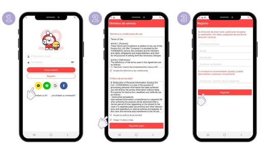 1. Puedes crear una cuenta iniciando sesión con tu cuenta de FACEBOOK, GOOGLE, LINE o KAKAO. También tienes la opción de crear una cuenta usando tu correo electrónico.