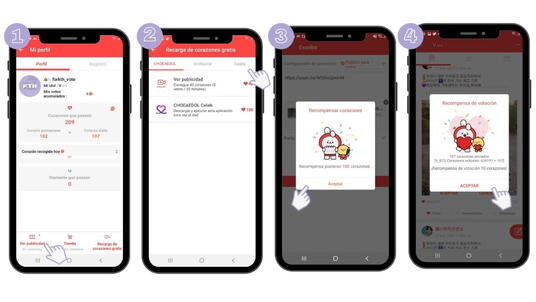 5. Votando con 100 corazones puedes recibir el 10% como recompensa.